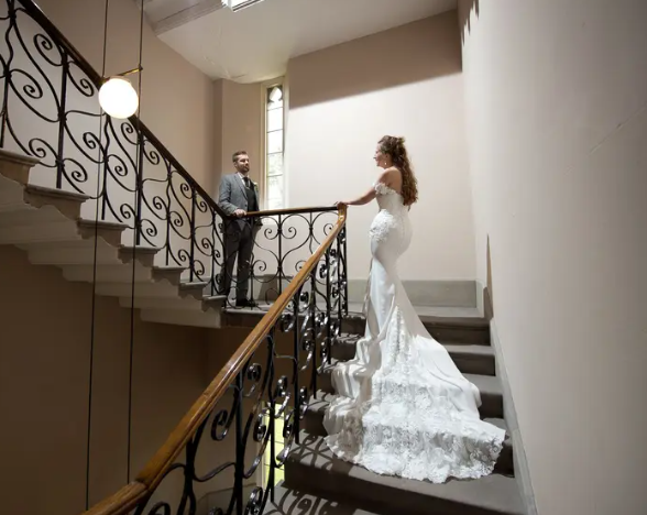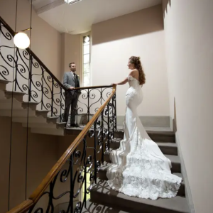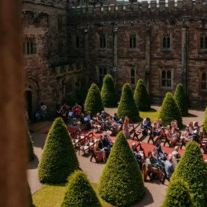 Within the castle, they can host civil ceremonies and celebrations to suit any wedding style, whether you are looking for something more traditional, informal, or extravagant. As well as the reception rooms, there are also numerous unique features, including the spectacular Cantilevered Stairway, Central Stone Staircase with decorative ceiling, captivating cloisters, and hidden doorways. Hampton Court Castle is pleased to be able to offer both indoor and outdoor spaces for your ceremony. The Chapel is perfect for a traditional style ceremony or blessing, with huge stained glass windows, pews, and an ornate painted ceiling. The central Courtyard offers a magnificent setting, with ornamental trees and views down to the Gatehouse, surrounded by original crenellation. For your reception, the castle is a fantastic entertaining space with great versatility. Welcome your guests to the Library, with glorious views and steps down to the South Lawns. Here they can enjoy drinks and canapes. The Grand Ballroom is a spectacular location for the wedding breakfast. With tall ceilings, lavish chandeliers, and grand mirrors, it offers the perfect backdrop for your first meal as a married couple.