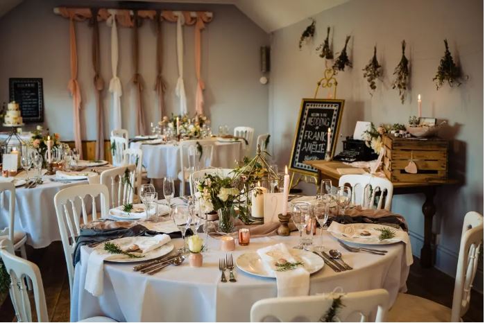The Lamb Inn has two function rooms available for weddings. The Dowrich Room can accommodate 40 guests for a wedding breakfast or 75 people for a relaxed buffet. For a more intimate celebration, the Tap Room is available for a sit-down dinner for 15 guests or an informal buffet for 15. The venue also has boutique accommodation on site, with seven bedrooms available. The spacious en suite rooms have underfloor heating and king size beds.